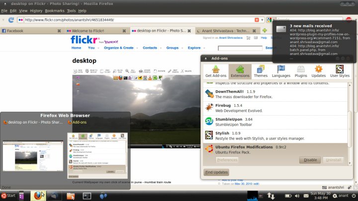 Facebook @anantshrivastava 30 May 2010, 16:01 Anant Shrivastava added a new photo. View original on Facebook → DockbarX live window preview along with notification system in action