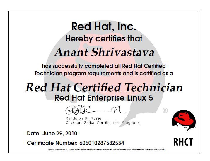 Facebook @anantshrivastava 10 July 2010, 14:00 Anant Shrivastava added a new photo. View original on Facebook → RHCT certification Number : 605010287532534